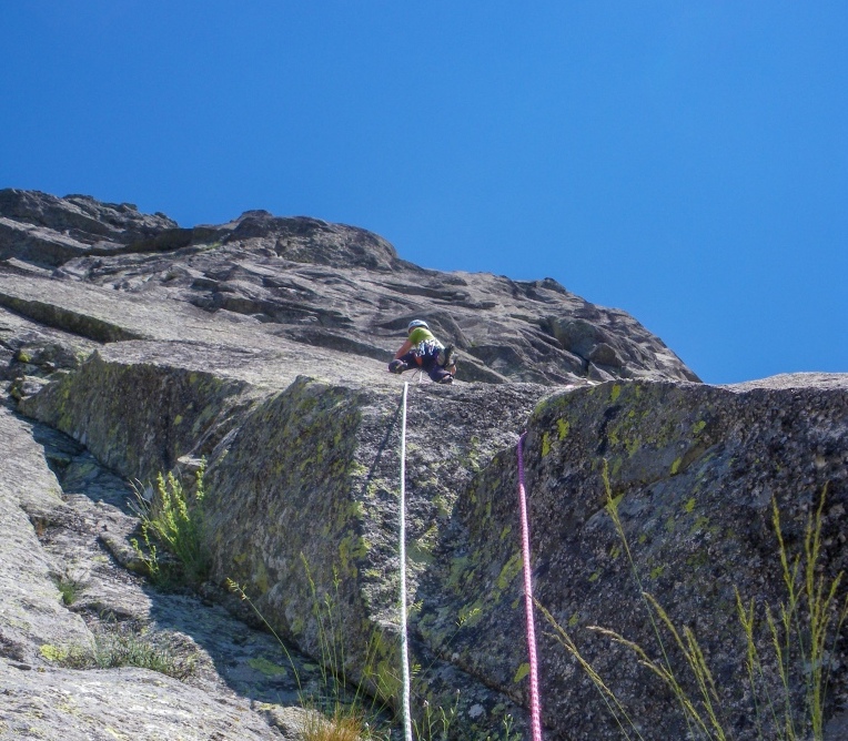 La vía discurre por la monolítica pared situada a la derecha de la gran chimenea de la cara Oeste. Encontramos algunos seguros fijos, llevar juego de Aliens y friends.