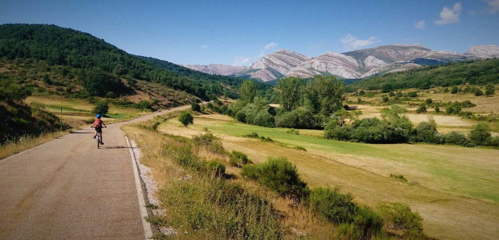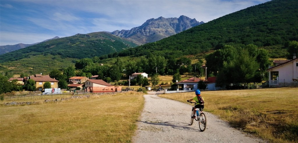 La llegada a la localidad de Piedrasluengas es sorprendente, aquí iniciamos un largo descenso por carretera hasta Casavegas, en donde retomamos de nuevo, una sucesión de pistas de tierra y piedras interminables.