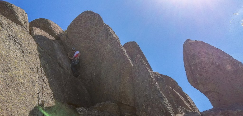 Hoy Borja F. y yo hemos repetido la ruta, y os podemos contar, que efectivamente merece la pena escalarla (es lógica y con largos bonitos); quizá el primer largo sea el más difícil, el segundo guarda una escalada en placa que es una joya de disfrute y el último, nos hará esforzarnos para llegar a la reunión.