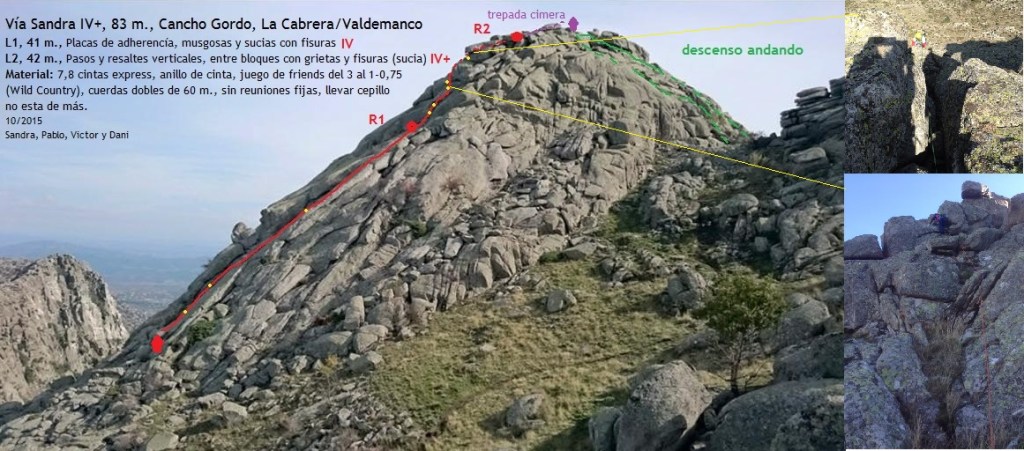 El Cancho Gordo de 1.563 metros de altura, es el punto culminante de la Sierra de la Cabrera, desde las inmediaciones del Collado Alfrecho (lugar desde donde se atacan las últimas rampas antes de coronar su cumbre) pudiera parecer que sus muros rocosos ofrecen poco o ningún interés para la escalada, nada más lejos de la realidad.