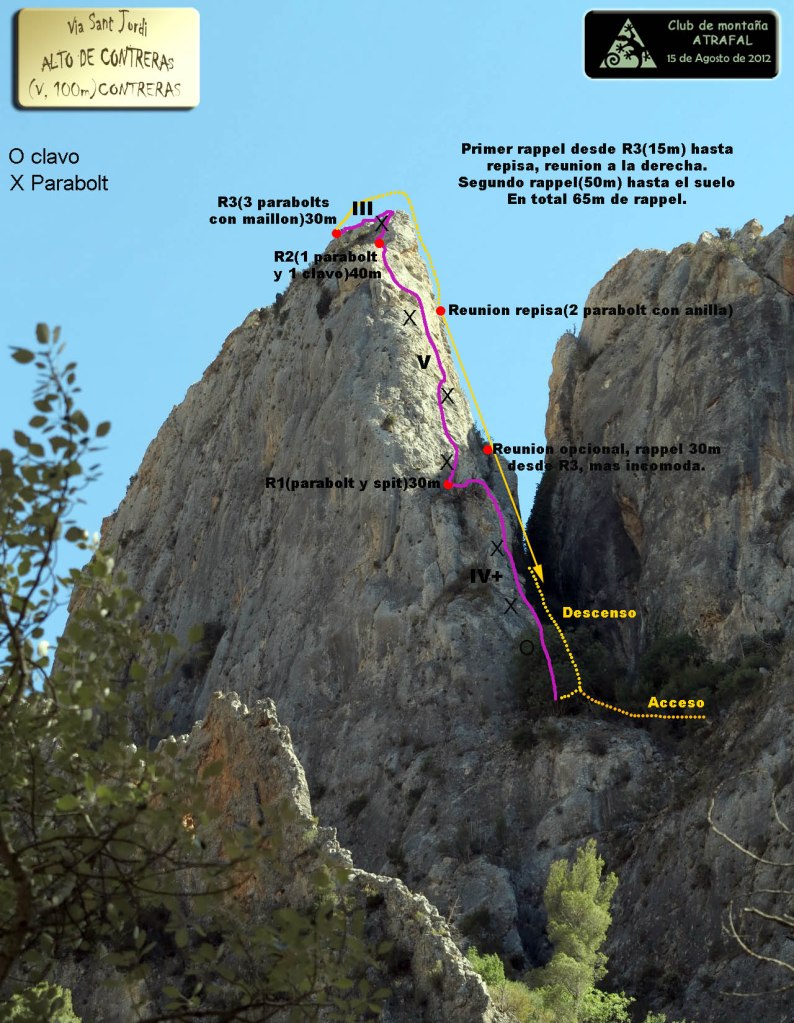 Podríamos resumir la escalada en el Cuchillar de Contreras en dos rutas: la primera de ellas asciende al conocido Torreón de la Moneda por su espolón Oeste y la segunda, asciende el conocido Alto de Contreras por la vías Sant Jordi.