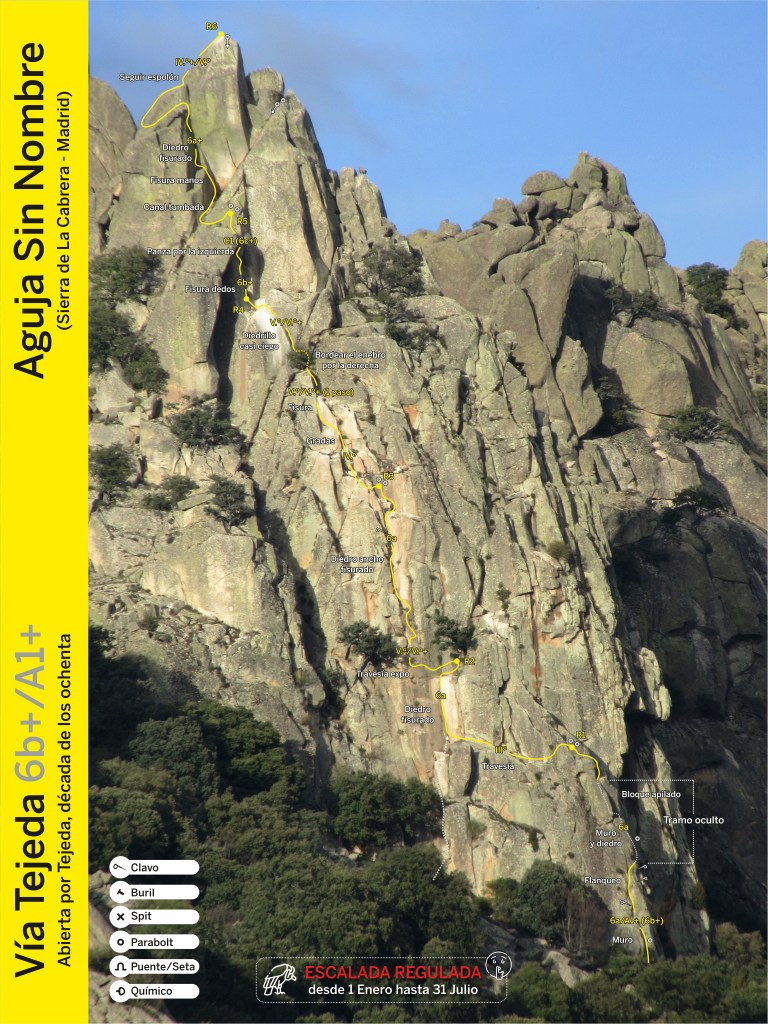 Si no hace mucho os dejaba una selección de rutas de escalada de la cara Este de la Aguja Sin Nombre, hoy voy a aprovechar para hablaros de una ruta que surca toda la cara Oeste: hablamos de la vía Tejeda.