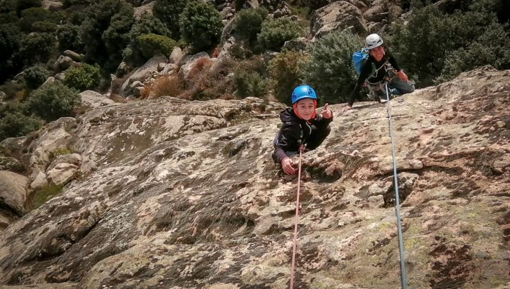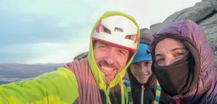 Oli quería escalar de primera, pero el primer tramo era tan difícil que se tuvo que bajar para que Papá escalara de primero.