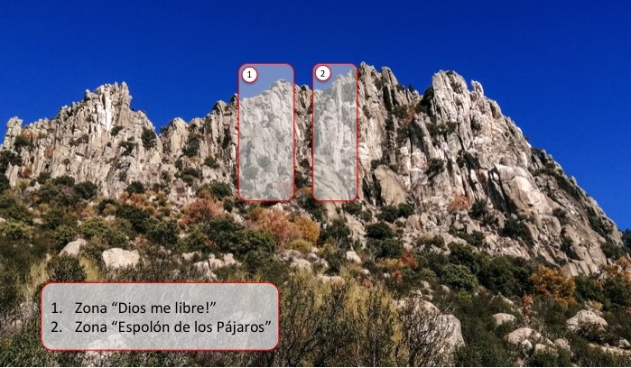 El terreno ya era conocido; muy próximo al Espolón de los Pájaros, escalamos Miguel y yo una bonita ruta que anecdóticamente llamamos Dios me libre !, a sabiendas quizá, que esta ruta de escalada ya estaría abierta por nuestros predecesores (algo que finalmente se demostró parcialmente).