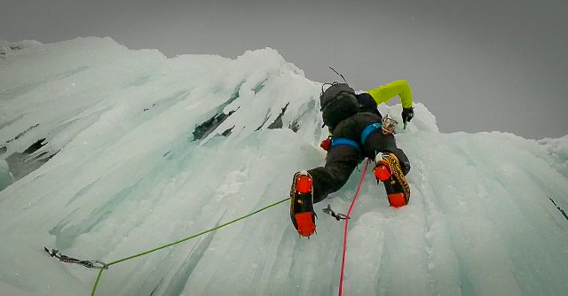 • La segunda opción (no siempre posible), es por el muro más vertical de hielo (reunión con dos Spits a la salida).