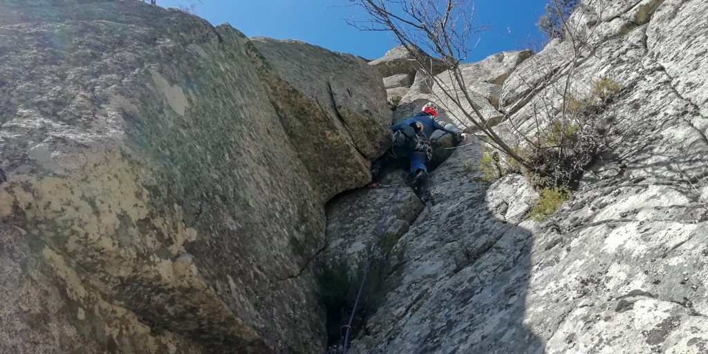 Un largo un tanto añejo (mucho cuidado con una laja expanding a nuestra izquierda nada más empezar), nos deposita en la base de la característica fisura que rasga el paño superior de la aguja, éste largo es muy bonito y estético (ojo que no lo regalan).