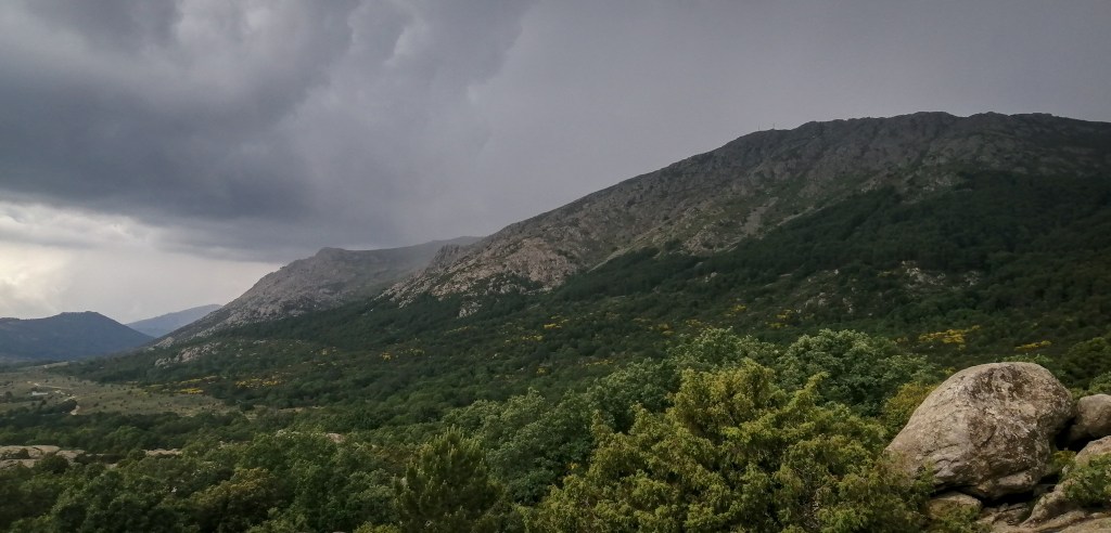 El cielo que cubría las Agujas de la Cabrera no auguraba nada bueno, llevaba observándolo un tiempo desde casa, y pensé que era la oportunidad (a las malas, nos habríamos dado un paseo Po y yo hasta el collado Alfrecho).