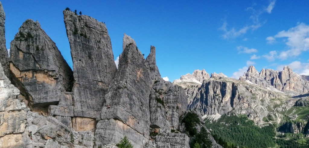 Habréis leído en multitud de ocasiones que el macizo del Cinque Torri es perfecto para los días inestables e inciertos, así como para los días de descanso activo. Pues así es, una zona muy agradable, cercana y en donde nos podemos complicar la vida hasta donde queramos, sin el estrés que aportan otras grandes paredes hermanas.