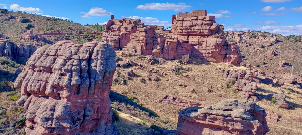 Grandioso entorno con excelentes vistas a los castillos de los municipios de Rodenas y Peracense, así como al rojizo y característico paisaje del rodeno (tipo de piedra entre arenisca roja y conglomerado).