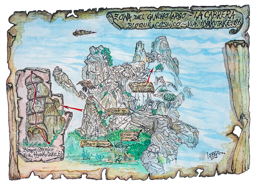 Pero éste post trata, sobre las diversas rutas de escalada existentes en los diseminados bloques rocosos, que conforman la orografía de éste abrupto terreno.