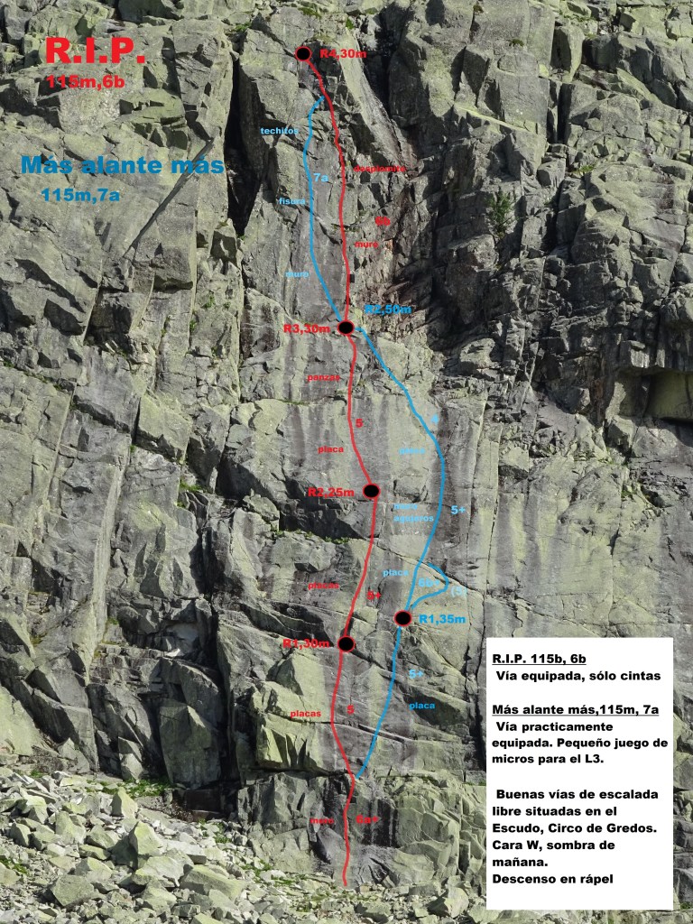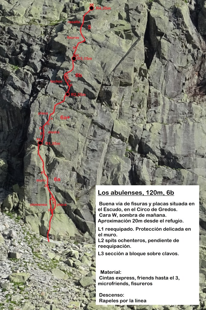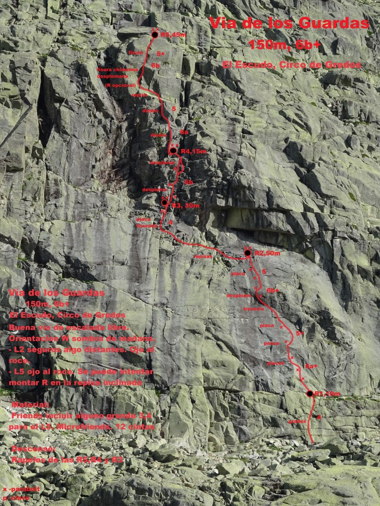 Tras la desaparición de la Wiki Gredos Alpino, se han perdido muchos de los croquis que existían del Escudo. Este verano, estuvimos escalando por allí, y aproveché para realizar las vías y reseñas que me faltaban.