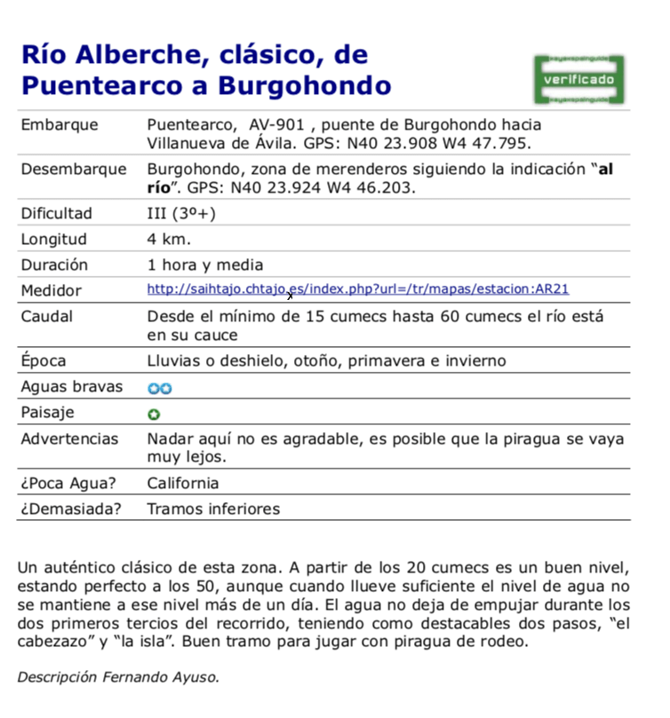 Llevábamos ya algunos días observando el nivel de agua del río Alberche (es un río un poco puñetero), ya que de un día a otro te puedes encontrar grandes oscilaciones en el caudal; haciendo que se transforme en un largo y técnico recorrido entre bloques de piedra con poca agua o por contra, en un indomable fluido.