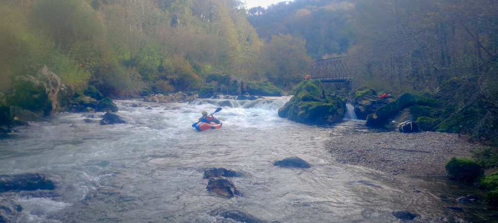Como os podéis imaginar, el caudal del río se encañona, dando lugar a una serie de rápidos muy marcados y que son convenientes mirar antes (sencillo desde la carretera). Categoría IV.