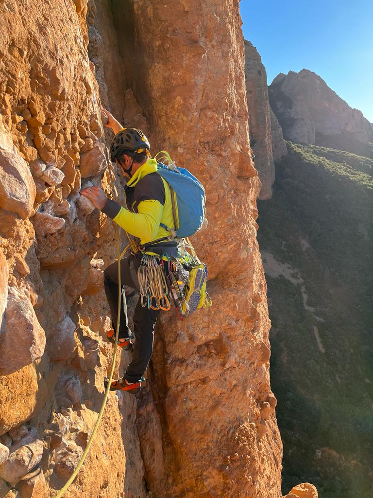 40 metros de cuerda, 22 cintas y algún cacharro más; y muchas, muchas, ganas de escalar.