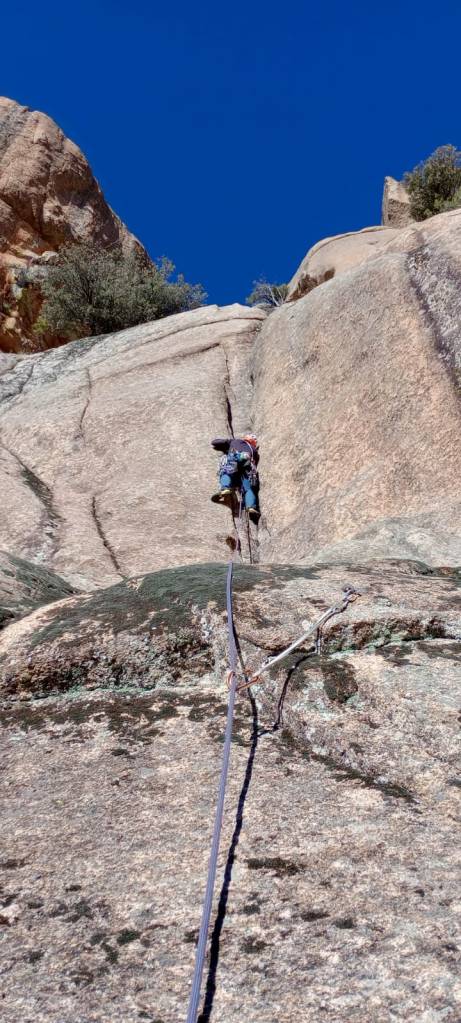 Es conveniente dejar como última ruta ésta, ya que a primera hora la sombra llega hasta la primera reunión, hay que dejar que el sol bañe poco a poco la pared.