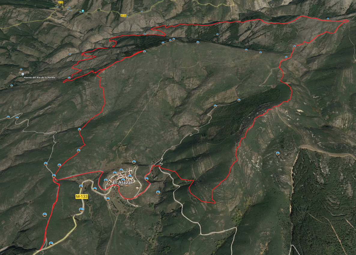 Con la perfección que aporta la circunferencia, regresamos desde la cumbre del Torreón al lugar de origen (pasando por el pueblo del Atazar), en un vertiginoso y escarpado sendero no apto para tobillos frágiles.