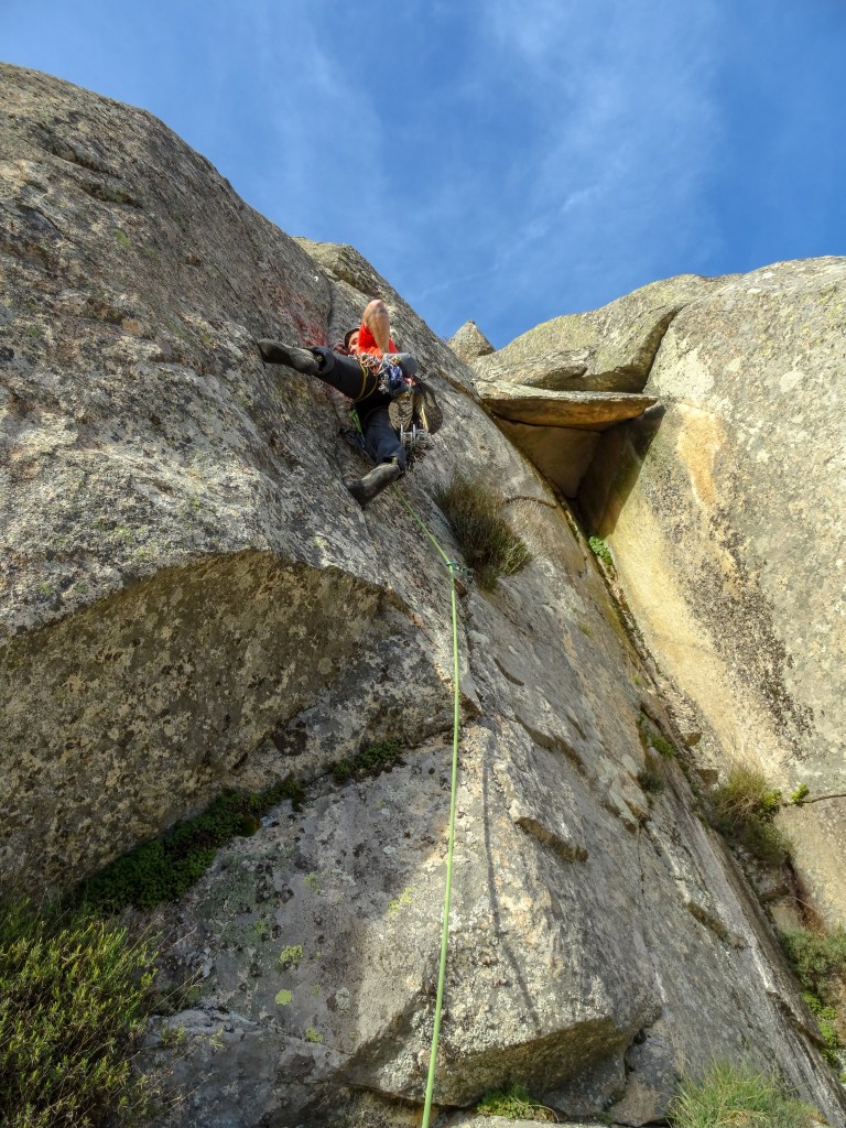El tercero, escalando una espectacular y difícil fisura que te adentra (mediante el paritorio) en la oquedad de la Guirles.