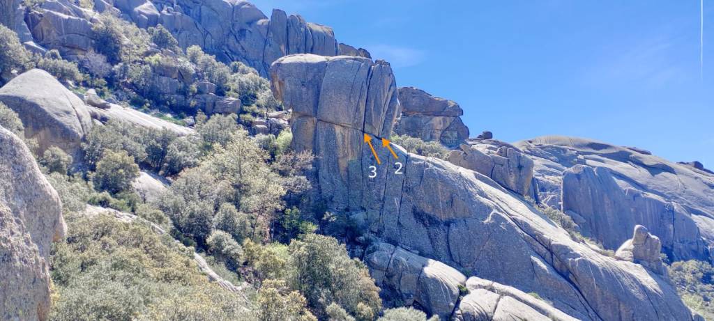 2.- Vía Oeste 7a: Otra joya olvidada, posiblemente una de las mejores fisuras de puños de la Pedriza. Se accede por una canal (clavo) en el margen izquierdo del risco. Repetir #3 y #4.