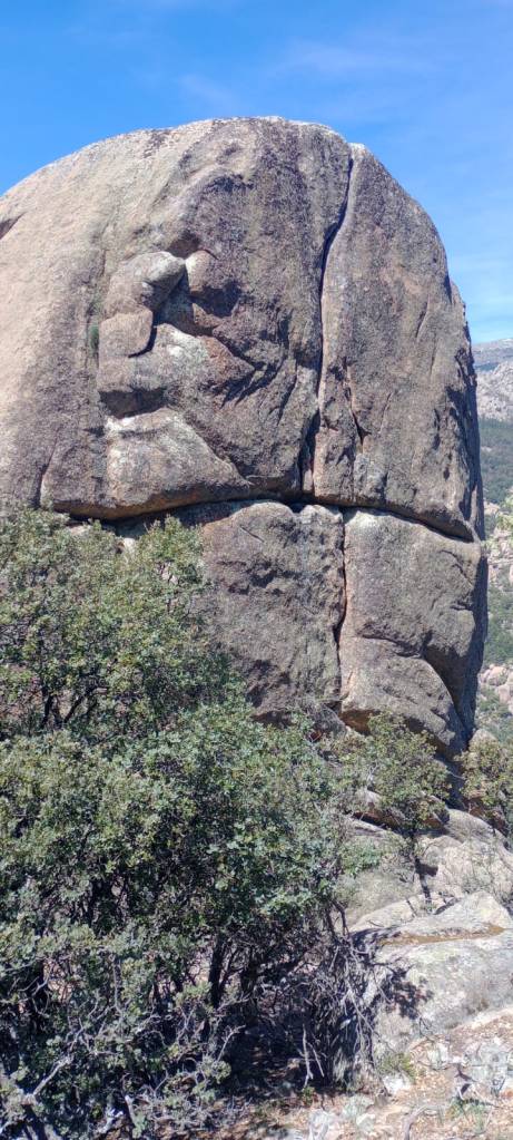 Curioso cancho cuadrangular visible en el lado izquierdo de la ladera de la Cueva de la Mora, en las inmediaciones del Camello y las Hueveras.