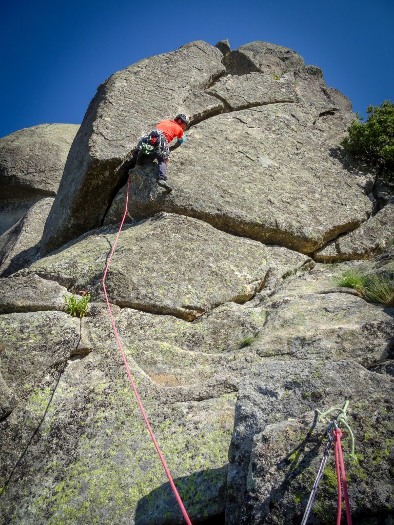 Atrevida ruta que no os dejará indiferentes, a destacar el off-width de segundo largo, una trinchera improtegible.