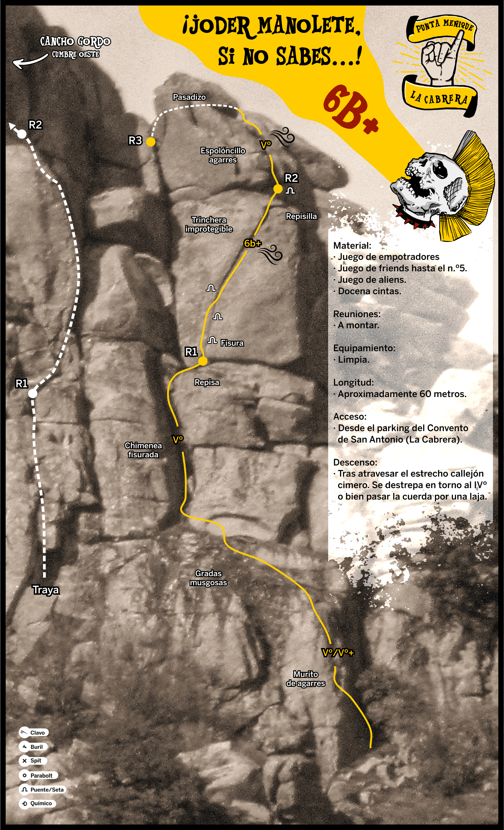Bonita y divertida ruta de escalada de corte clásico, a destacar el segundo largo, una curiosa fisura chimenea.