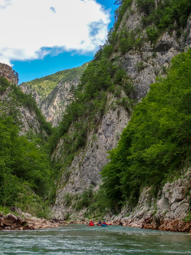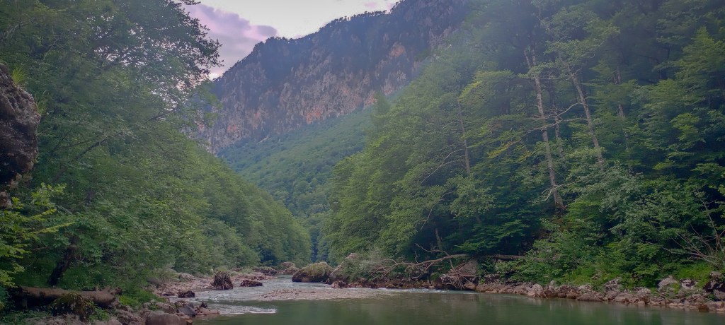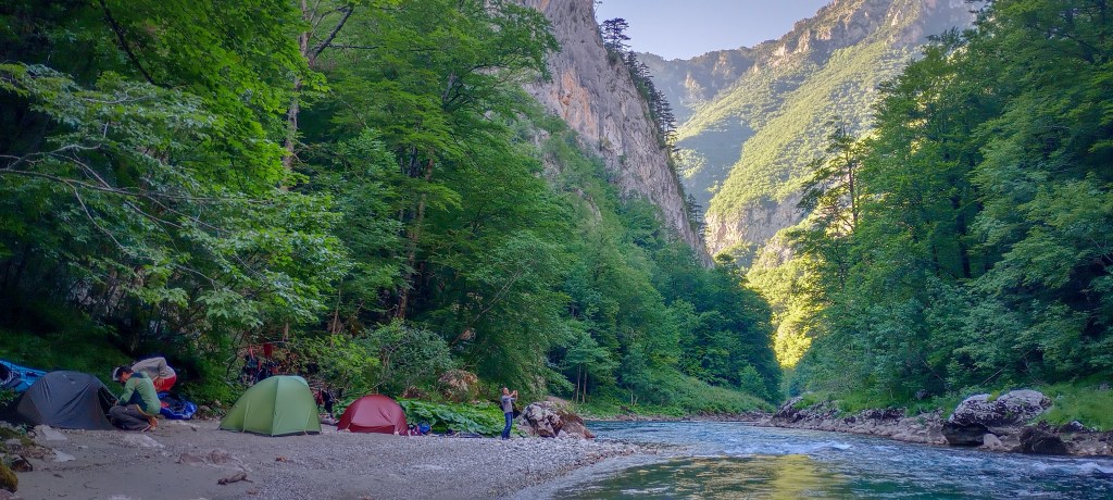 No sé cómo ni por qué, terminamos el día en lo que sería nuestro final del descenso del río Tara: Šćepan Polje. Muy cerca de la frontera con Bosnia y Herzegovina, y donde se junta con el río Piva (potente descenso de grado IV, cuando la presa suelta agua) formando el denominado río Drina.
