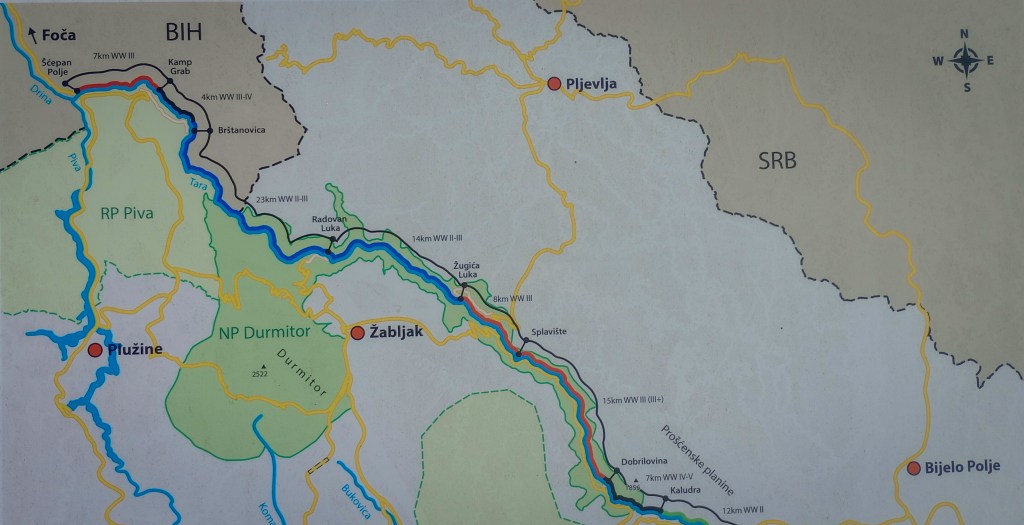 Previamente ya habíamos recopilado algo de información sobre el río durante nuestra estancia en Šćepan Polje, sabíamos el comienzo del embarque de la zona comercial (en donde se hacía rafting), los kilómetros, el grado de dificultad (sin concretar, ni conocer pasos) y el desembarque.