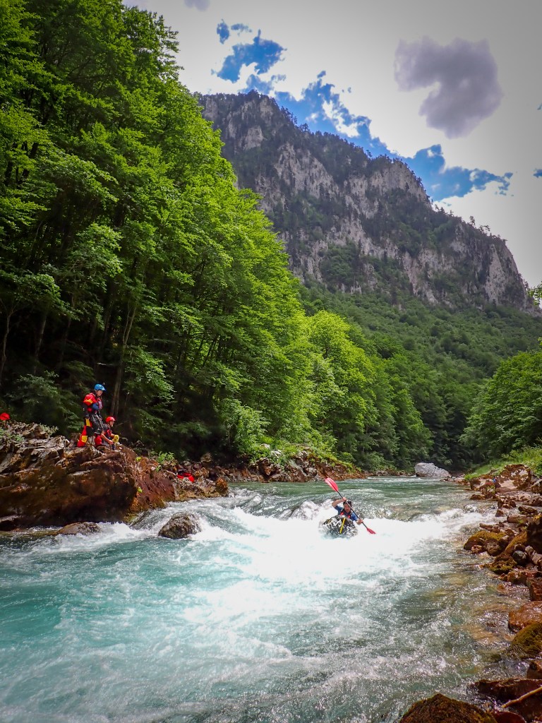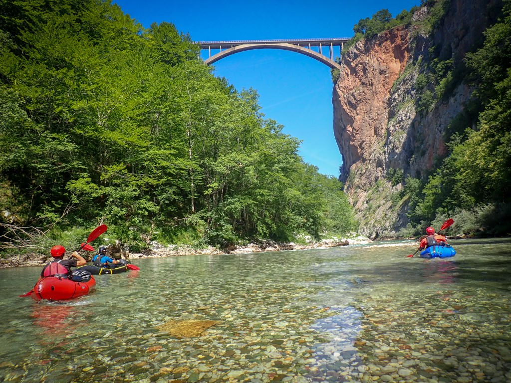 El primer día de descenso fue el más tranquilo, tan sólo realizamos los 17 km desde nuestro embarque a Splavište parking, es un tramo complicado en donde nos bajamos varias veces de nuestros Packrafts para ver algunos pasos (algún salto, rebufos raros y caos de bloques).