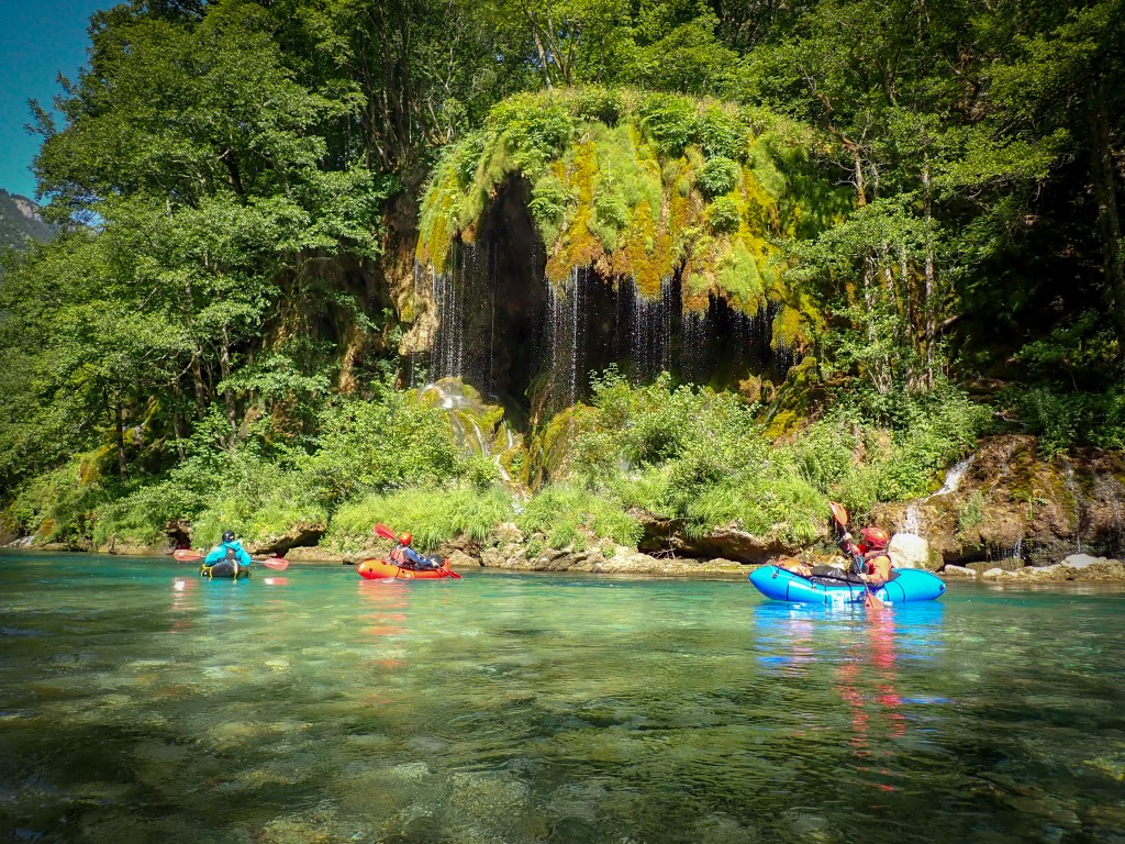 El agua, perfecta: verde esmeralda y tan translúcida, que eres realmente consciente de la velocidad a la que fluyes al ver pasar debajo de ti, las piedras del lecho del río.