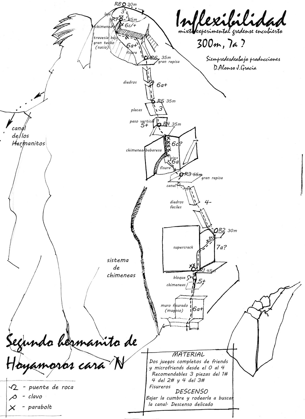 Tras escalar sus tres primeros largos, tenemos dos opciones: Rapelar hasta el suelo o llegar a la cumbre del Hermanito enlazando alguna de las rutas vecinas.