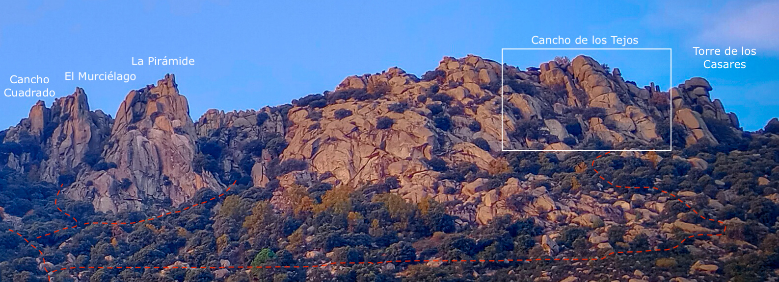 El Cancho de los Tejos es una zona poco conocida de las Agujas de la Cabrera, pero no os dejéis engañar por ello, desde los años 80 se lleva escalando por sus paredes y sus innumerables posibilidades.