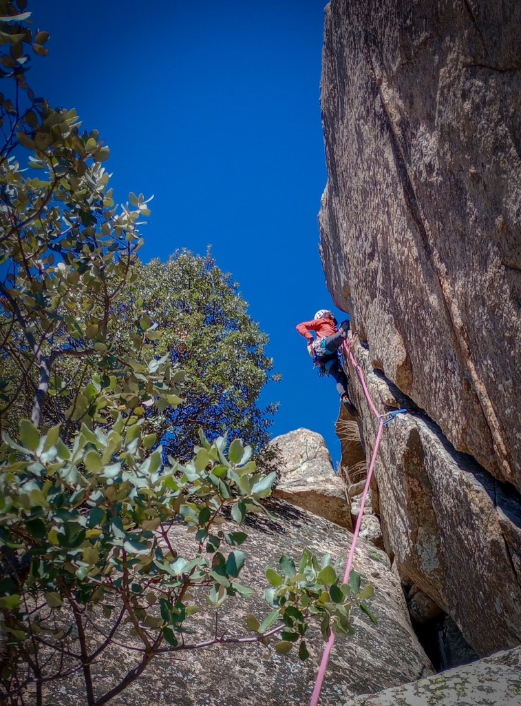 Ro escalando la «Pedro pisando el diedro 6b». Foto: C. González
