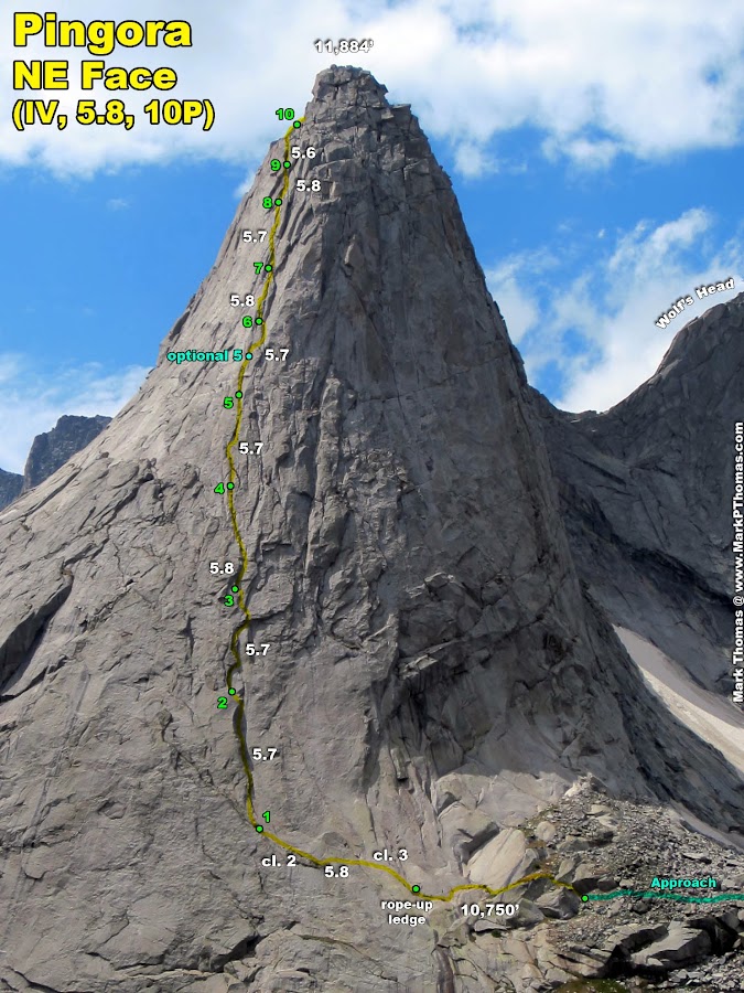 Aquí podemos encontrar las clásicas Cara Noreste de Pingora y la Arista Este de Wolf’s Head, recogidas en el «Top 50 classic routes in North America» .