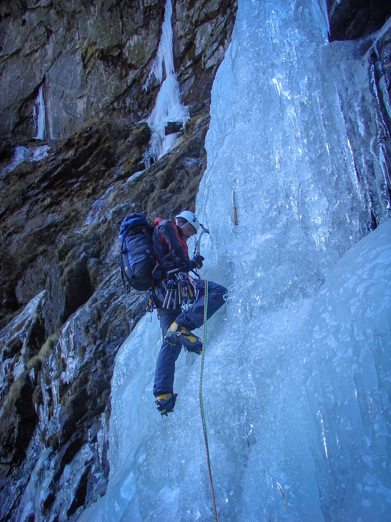 Lo que sí os puedo decir es que debe ser una de las cascadas más hermosas y grandes del mundo; fue abierta por Catherine Destivelle y Eric Decamp en diciembre de 1993.