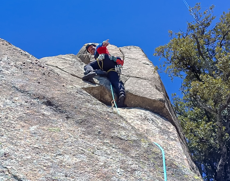 He visto diversas graduaciones y maneras de hacer esta ruta, se trata de un estético espolón equipado que se puede realizar en uno o dos largos. Al parecer uniendo los dos el grado aumenta, algo que bajo mi punto de vista no es real, existe una amplia repisa antes de acometer el segundo largo. Allí puedes comerte el bocadillo antes de subir por él, hacer reunión o no…. percepciones.
