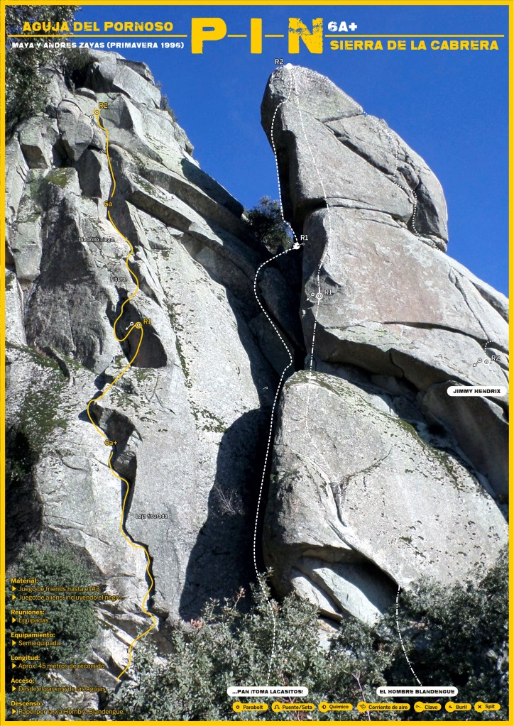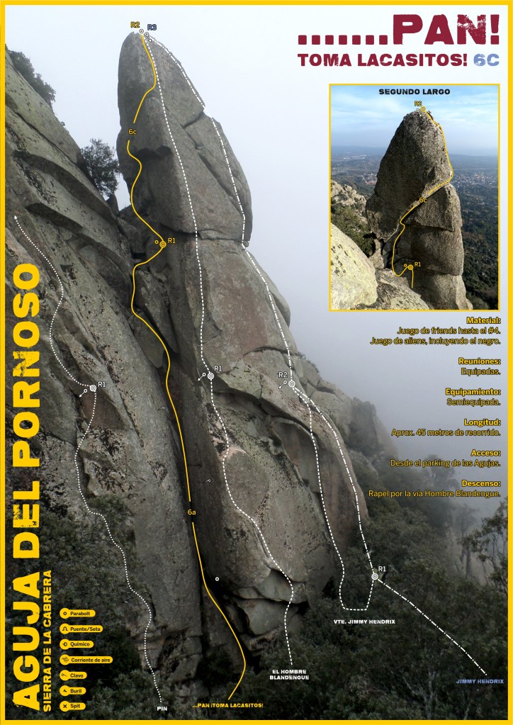 La Aguja del Pornoso alberga algunas rutas interesantes, el principal aperturista de la zona es Maya y Andrés, que han dejado algunas líneas muy buenas y divertidas. Posteriormente se abrieron y equiparon otras para rellenar el sector.