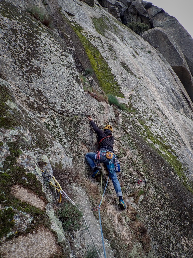 Pese a todo pronóstico, pudimos escalar; nos juntamos dos sordos (uno selectivo y otro afectado por un terrible constipado) y un tercero, que aportaba algo de cordura a la cordada.
