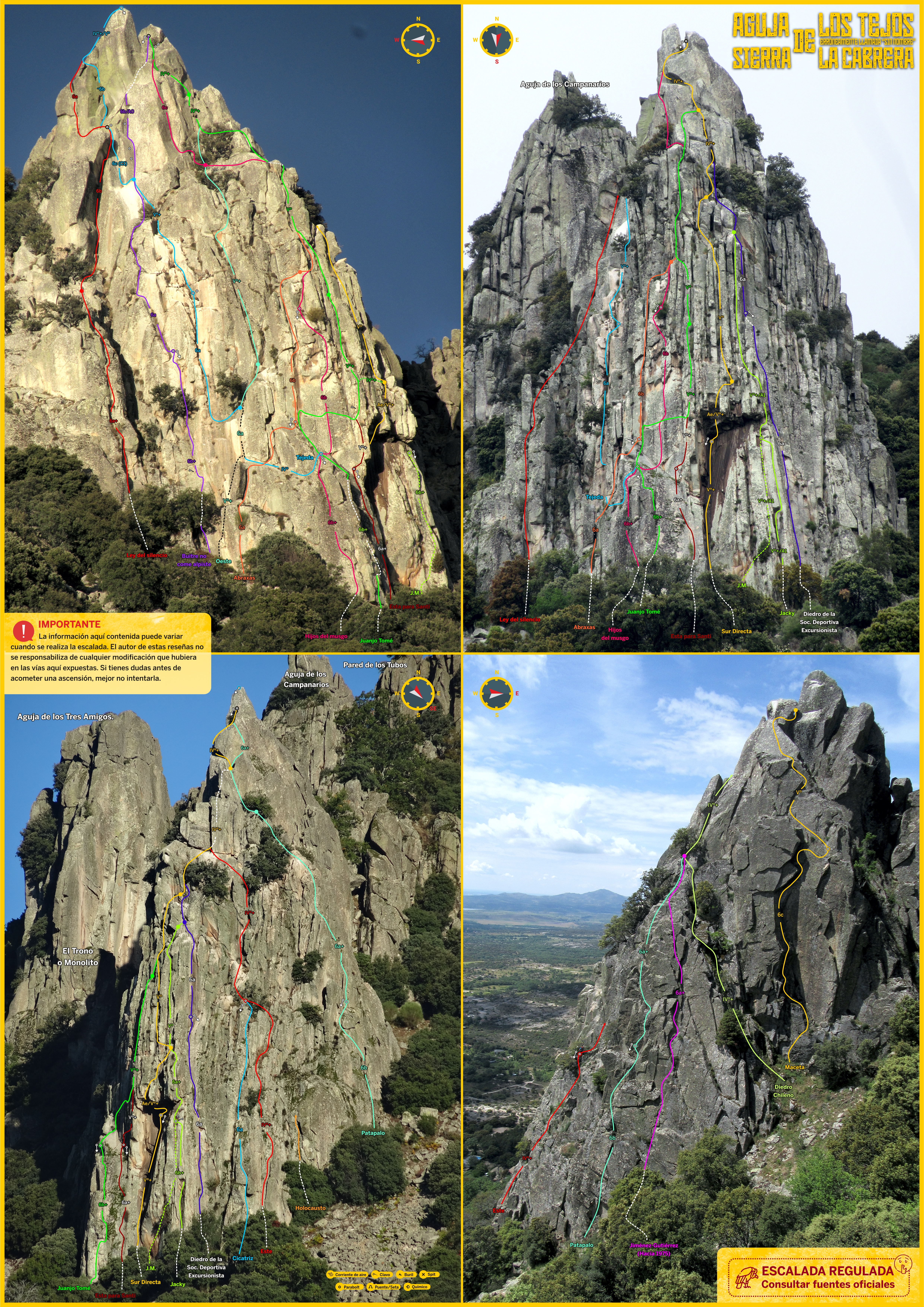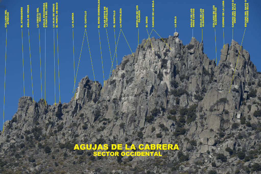 Otra formación rocosa de la Sierra de la Cabrera que no necesita presentación, en su cara Sur alberga escaladas archiconocidas; su cara Este, recoge una selección de rutas exquisitas. Por otro lado, su cara Norte espera aún una limpieza y exploración de sus líneas (cada vez más cerca de descifrar sus encantos.